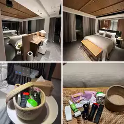 With a 270-degree field of view, a sense of space, the room design is simple, mainly white and wood, atmospheric and comfortable☺️ The large bed is located in the center of the room, you can get up in the morning and look at the sea view, the whole person is extra spirited😍