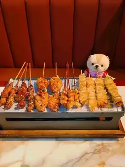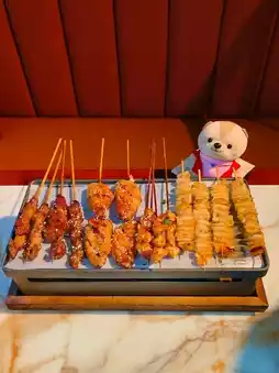The skewers are ordered in 2/4 skewers, and include crispy chicken skin, chicken cartilage, lamb skewers, chicken wings and preserved radish and bean curd. They are kept warm in a small iron plate so you can eat them slowly. I like chicken skin and chicken cartilage the most. They are crispy and tasty, and are also a good snack to mix with wine😚. The mutton skewers are tender and tasty. The skewers can be cooked to a desired level of spiciness, and the seasoning is moderate and rich in flavor.