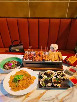 This time I went to Joyo intown to find food. It is close to the border and several shopping malls, so it is quite convenient 😆. This time I wanted to eat skewers and found a Teochew restaurant that serves Teochew dishes, skewers and cocktails. The shop is located in the middle of the 4th floor, with a modern decoration of red brick walls and an outdoor dining area🙈.