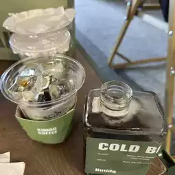 The glass bottle 🍾 in the shape of a wine bottle 🍾 once you open the cork, you can smell the rich whiskey aroma 🤤, the coffee shop is very courteous has provided ice cubes and takeaway cups 🧊, slightly cold cold brew coffee, in fact, drinking no alcohol, still enjoy the texture of cold brew coffee ☺️ good good, worth a try 👍🏻
