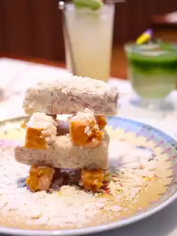 The new-style traditional Teochew cuisine recommends a combination of Teochew beef toast, handmade ancient-style dumplings, and sweet potato with anti-sha taro