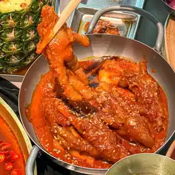 The chicken feet are covered with soft Korean year cake, soft and delicious!