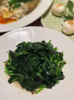 Chrysanthemums and green leaves embellish, the dish is elegant and delicate