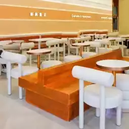 🌿 The space inside the store is large, simple and bright, with a fresh style and wide seats