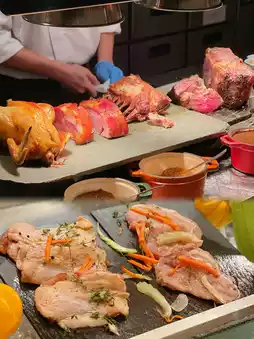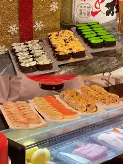 There are many types of 🥗salads and 🍉fruits to choose from. There are also a variety of Japanese sashimi and sushi, which are fresh and hygienic.