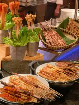 There are many choices, including dishes from all over the world. Made-to-order specialties steamed seafood🦪, skewers🍢, pizza🍕, barbecued meat, hot pot♨️, pasta🍜, Chinese barbecue, Chinese stew, Chinese stir-fry, fried noodles and rice, dim sum, etc.