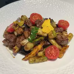 This dish features premium beef, served with black truffle and marinated sauce. The beef cubes are tender and juicy, infused with the unique flavor of black truffle.