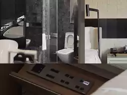 The size of the guest room is about 60 square meters, and the layout is reasonable. I especially like the sofa, table and chairs, which look very homey. The color scheme is mostly gray + wood color, but it doesn’t make people feel aesthetically tired, as some design thought was put into it. Soft drinks are free in the minibar, which includes the three at the bottom row of the mini fridge. The toiletries are from Italian brand Roberto Cavalli. It’s my first time using this brand and it doesn’t seem to have any smell, so it’s okay. The guest room faces the road and is directly opposite to the residential building, but if you walk in and slightly turn the window, you can see the Mandarin Oriental Shenzhen. It’s the same feeling as when you looked back to the hotel from the guest room of Mandarin Oriental Shenzhen.