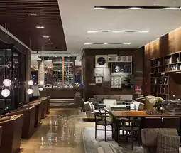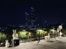 Outside the breakfast room is a bookstore. If you want to chat with friends, you can sit here and chat. It is very comfortable. Of course, the rooftop terrace is even more amazing. The view from the rooftop is truly excellent, as there are no high-rise buildings around to block the view, and the night view of Futian is in full view.