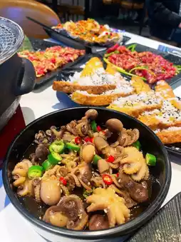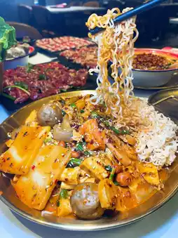 The sesame sauce just blends the spicy and spicy taste. There are beef balls, crab sticks,