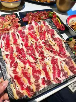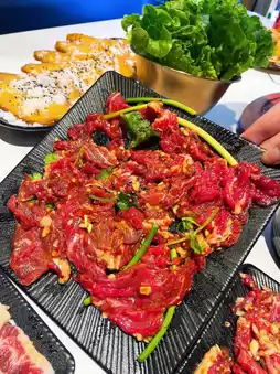 A mouthful of barbecue, a mouthful of sweet strawberry ice🧊 feels so cool.