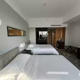 The 25th to 36th floors of the hotel are guest rooms. The superior twin room booked this time has an elegant design and exquisite decoration. It is about 40 square meters in size and is quite spacious and comfortable. The room has a large floor-to-ceiling window with landscape design, which is very rare in the Huaqiangbei business circle where every inch of land is valuable, so the landscape view is a highlight of the hotel room. The room is fully equipped with facilities and equipment, the hygiene is pretty good, and the price is not high among five-star hotels in Shenzhen. The overall cost performance is still good.