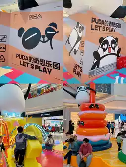 3⃣ Then go back to the 1st floor, the atrium is holding a Puda theme exhibition, super cute panda decorations, must come to take pictures 😎 Friends who like to take beautiful photos remember to go to the 5th floor sky street pink romantic theme roof 💖 suitable for couples to take sweet photos, leave beautiful memories 😘😘