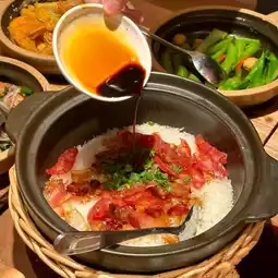 The rice is full and fragrant, covered with various kinds of pork flavor, and is moderately salty and sweet
