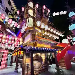 Red lanterns, pavilions, calligraphy screens, the environment is very antique