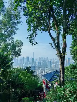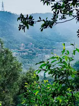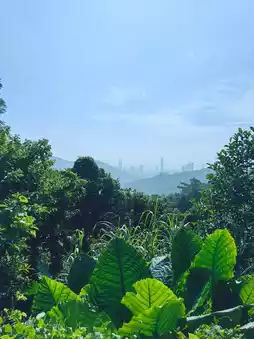 There are not many mountain walkers on weekends, looking at the city skyline from the top of the mountain, it's like a mirage