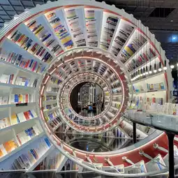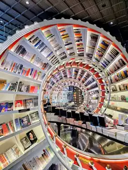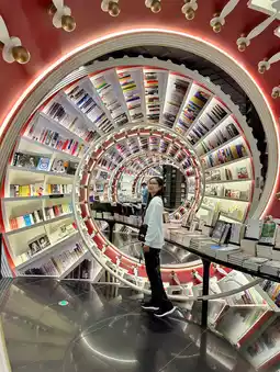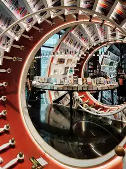 The most attractive thing is the red spiral bookshelf that runs throughout the store. The design is full of technology and the design symbolizes [people who keep spinning in the city]. Definitely a library that combines bookishness and art.