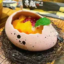 Finally ordered the egg under the store manager, that the appearance is cute, it turns out you know it is dessert, inside is vanilla ice cream, with popcorn, coconut fruit, etc., great for photography