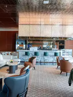 Before going to Hilton, check in at Hampton by Hilton. There are two locations in Futian Port and Huaqiangbei, and the one in Huaqiangbei is the newest one. The lobby is on the middle floor, so you can enjoy the view of Shenzhen city while checking in. There is also a cafe on the same floor, and there is wireless charging service on the high platform while waiting, which is very considerate.