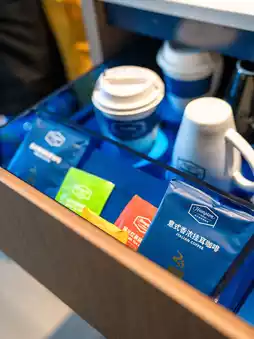 As for the rooms, the hotel is themed on white and blue, and the rooms are all dominated by white and blue tones, with a good sense of space and plenty of light. There are USB chargers by the bed and on the desk, which is very considerate; other facilities are complete, and the most interesting thing is that the coffee comes in a drip bag with a cup, so you can take it out after making a cup👍🏻👍🏻