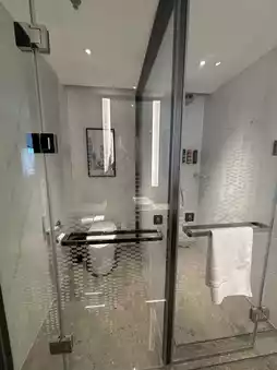 In terms of bathroom facilities, the toilet and bathroom are separated, but transparent glass🤭If the people in the same room are close, there shouldn't be much of a problem😂