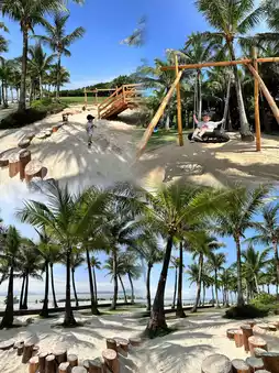 Upon reaching the seaside playground, children can have fun to their hearts' content, swinging, climbing frames, digging in the sand, sliding down slides, crawling through nets, etc.