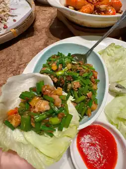 Clam meat and chives are stir-fried to make it tasty, and can be eaten with lettuce wraps.
