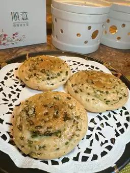 The scallion oil has a strong flavor and is crispy on the outside and soft on the inside.