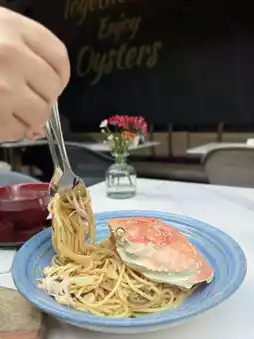 The original East Coast Red Crab Meat Pasta 🍝 is full of crab meat, the pasta is highly sauced, and the flavor is rich. The volcanic rock grilled Angus shank steak 🥩 was still sizzling when it was served. The meat was good. It was delicious with just some seasoning!