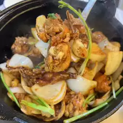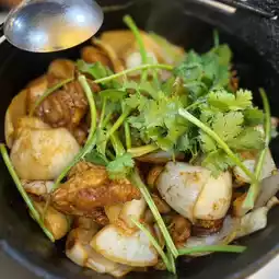 The signature chicken pot is the signature dish of this hot pot restaurant. The chicken pot is fried as soon as it is ordered and added with a secret sauce. The sauce is rich and full of the aroma of chicken, and it tastes very memorable. The chicken pot contains tender and juicy chicken pieces that melt in your mouth.