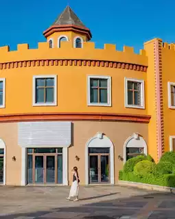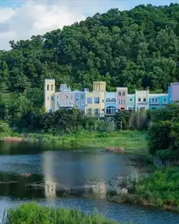 It is surrounded by lush nature. While feeling the purity and tranquility, its colorful buildings are also eye-catching. The whole manor exudes a strong artistic atmosphere. This atmosphere that combines nature and beautiful architecture is like walking into a fairy tale paradise.