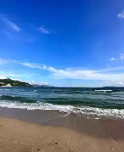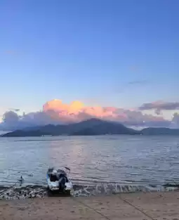 This beach is not a man-made pure sand beach🏖️; the sand is mixed with natural ecological debris like pebbles and shells🐚, which can be a bit sharp on the feet, so be careful when walking.