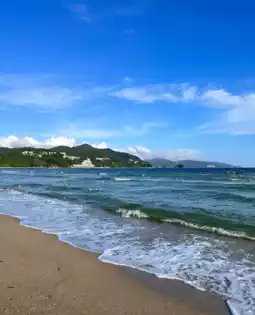 The beach has a designated swimming area, and you can only swim within the enclosed space, which feels very safe.