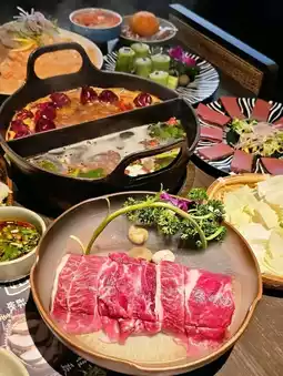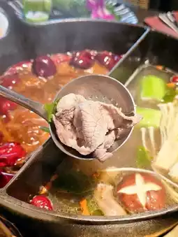 🍲Four Seasons Herbal Yuen Yuen Pot: 🥣 The soup is boiled for 3 hours with over 100 kilograms of beef bones, beef, beef jerky, and added Nongfu Mountain Spring mineral water and dozens of plants and herbs. 🌶️Sichuan Spicy Soup The soup is cooked with eagle tea, spicy and not greasy!