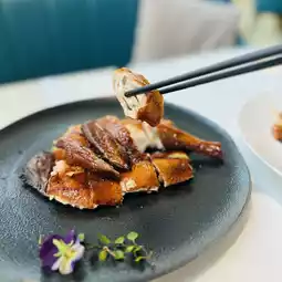The chicken skin is thin and crispy, and the meat is not too dry. The outer layer has a slight charred crispiness😍. It turns out the restaurant's chickens take ten thousand steps every day and are raised on mountain spring water, which explains why the meat doesn't taste greasy🤤.