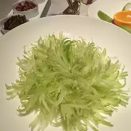 Two celery flowers on the tail of phoenix with oil and vinegar sauce