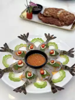 Using nine-knot shrimp, with garlic slices, mint, chili, etc., the meat is tender and spicy