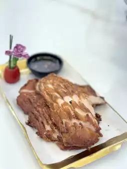 Extremely flavourful, the pork neck is grilled until golden brown, the aroma of charcoal is overwhelming, and it is refreshing and crispy