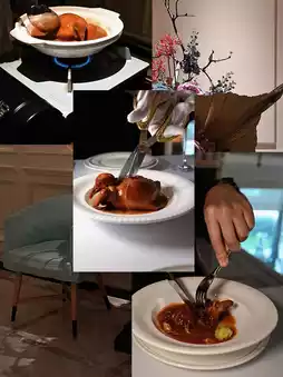 Selected 23-day-old breast pigeons, with two teeth to choose the wings. The master will remove the bone from the neck of the pigeon and inject it into the fin. It takes half an hour just to remove the bones. Sounds like a time-consuming and time-consuming dish.