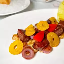 The signature crispy chicken 🍗 is also a surprise, the skin is super crispy, the meat is super tender, salty and delicious, it is also a must-order dish~ Mustard-flavored fish maw, fried scallops with white jade and bamboo shoots, golden garlic and dried onions𝐌𝟗Wagyu beef🥩, It’s also worth trying~