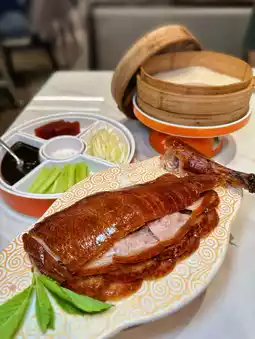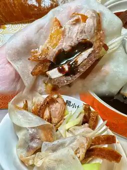 The roast duck skin is crispy, the meat part is tender, the ingredients feature hawthorn strips can have a refreshing effect! Most appreciated, each piece of the pie crust is separated, the bottom has a steamer with fire to heat, the bottom of the roast duck utensils also has a fire! It's really important to keep the temperature when eating duck sliced, and until the last slice is still warm, great satisfaction