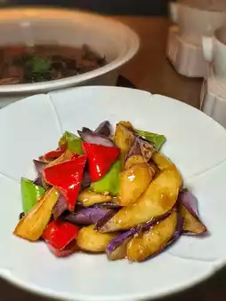 Locally selected ingredients, potatoes, green peppers, eggplant are fried and then added simple seasoning, eat the most original taste of the ingredients