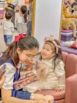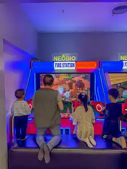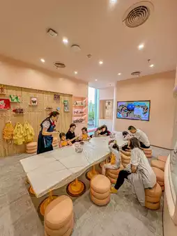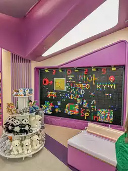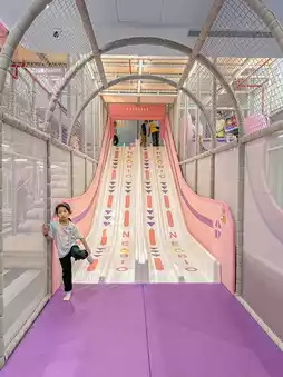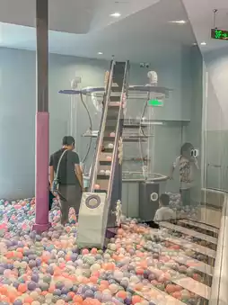 Besides, there are also fun game areas like the rotating slide, mini kitchen, and more