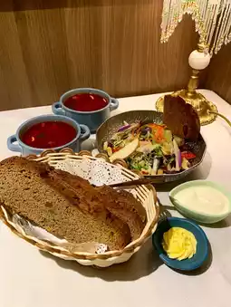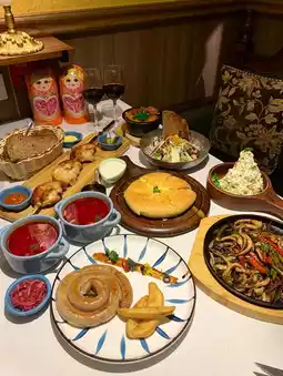 The Russian decoration has a kind of romantic feeling of dining in a Western country~