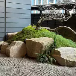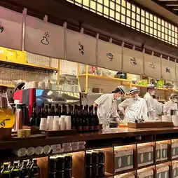 The restaurant has a Japanese style, featuring a small garden and an open Japanese kitchen, which is quite special