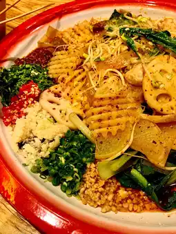 Each has its own specialty meats. It's crispy and juicy when you eat it in one bite!