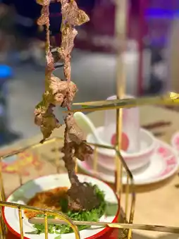 Secondly, it uses home-raised chicken, the chicken that grew up under the peach blossoms, for 180 days, and killed and cooked every day, eating crispy skin and tender meat, nothing sticky 💕 It is recommended to eat chicken first, then add soup can be boiled noodles, chicken, vegetables and so on. They also have skewers, we ordered snowflake beef, large skewers up, when eating asked the staff to grill a grill and cut open, must try it 😍 We also ordered leeks, are very tasty 🥰