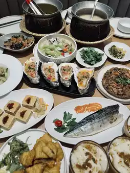 The environment is tasteful, white wood decoration, home feeling, spacious seating, suitable for a large group of people to eat😚