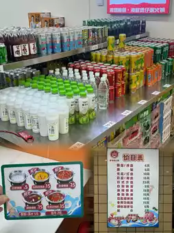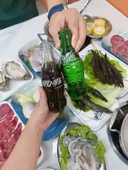 Drinks are self-pickup from the fridge, the cheapest must-have glass bottles of Coke and Sprite