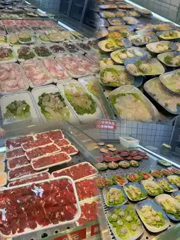 Fresh cut beef, fresh cut dragon, beef tongue, fat beef rolls, lamb rolls, chicken, pork, and fat field chicken